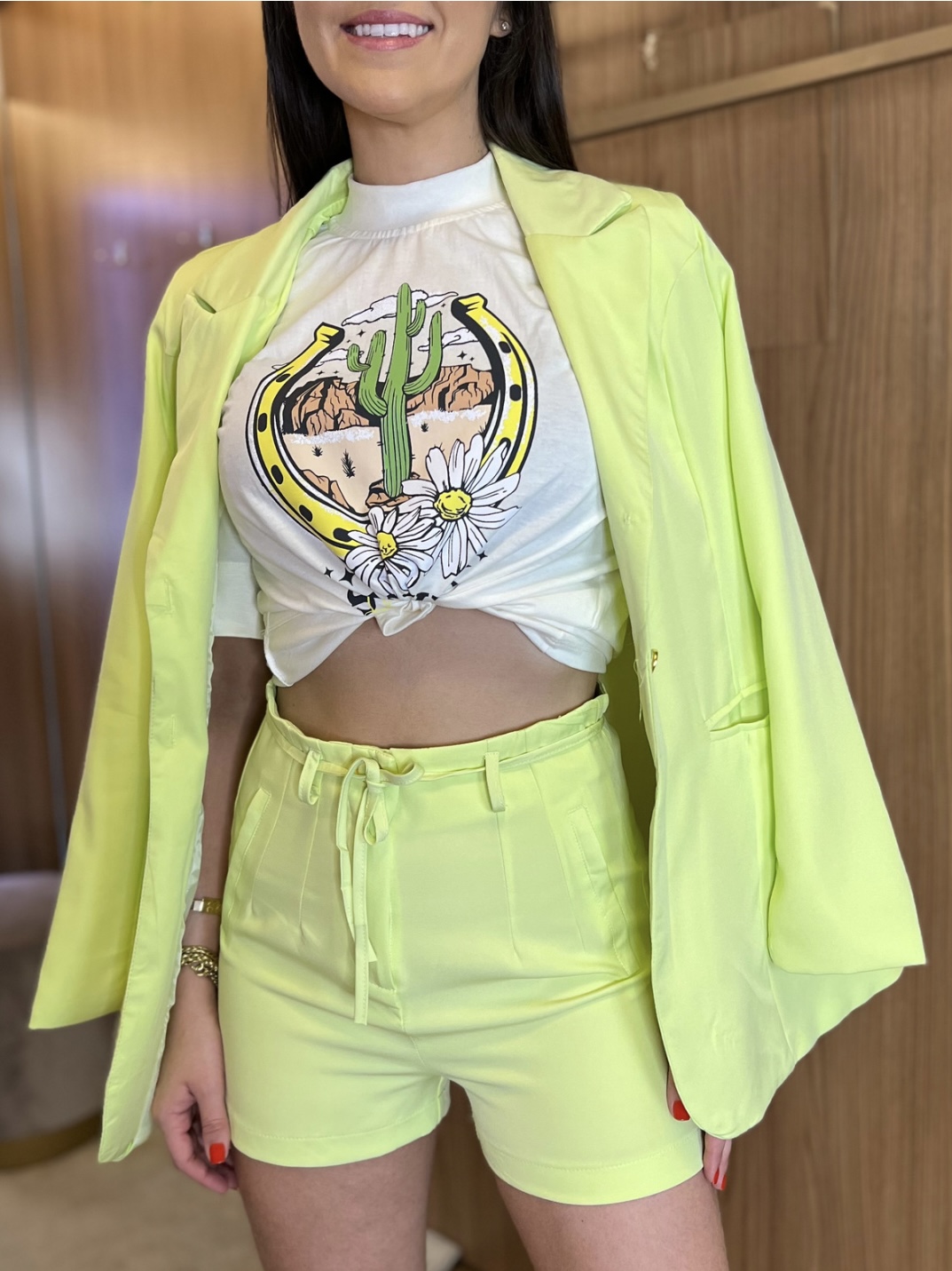 Conjunto blazer e bermuda alfaiataria